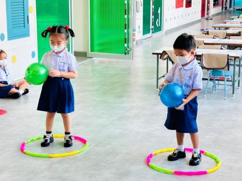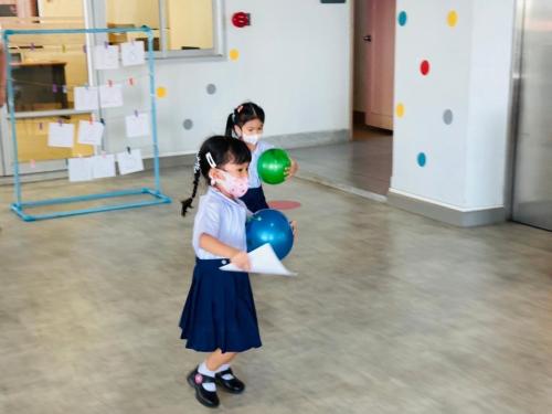กิจกรรมนี้ครูให้เด็กได้เคลื่อนไหวร่างกายจากการวิ่งและถือลูกบอลไว้ในมือ จากนั้นไปหาตัวเลขที่ตรงกับเลขที่ของตนเอง เมื่อหาเจอแล้วให้วิ่งกลับมายังจุดเริ่มต้น และบอกหมายเลขที่ตนเองหยิบมาให้เพื่อนและครูฟัง